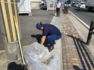 火曜日、木曜日は支店構内の清掃。そして月曜日、水曜日、金曜日は支店に面する府道宇治淀線の沿道の清掃を行っています。